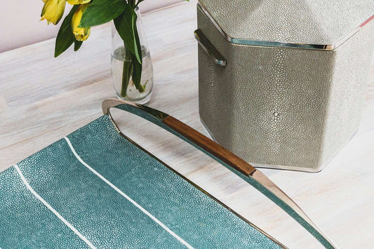 Jules Serving & Drinks Trays in Teal Shagreen
